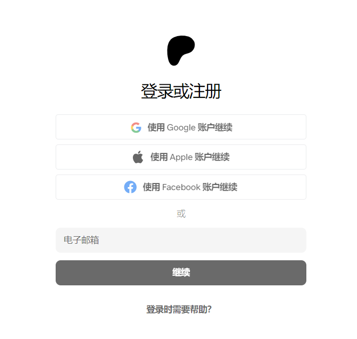 2. 然后我们可以输入我们的邮箱,也可以直接选择谷歌邮箱,苹果账户或者 Facebook 账户进行登录。