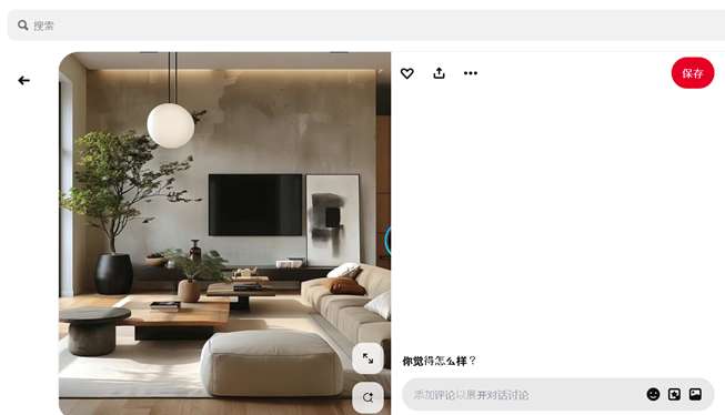 类似图片推荐:点击一张图后,Pinterest会推荐风格相近的内容 。