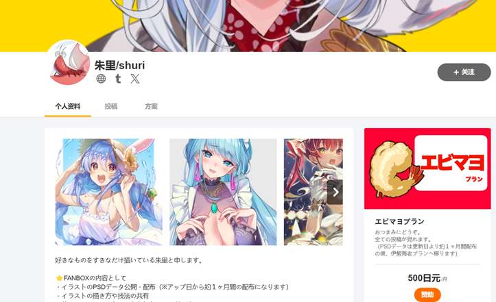- 创作者支持:Fanbox 让创作者(如插画师、漫画家、设计师等)通过粉丝订阅获得收入支持,粉丝可以选择不同的订阅档次,以获得不同的内容。