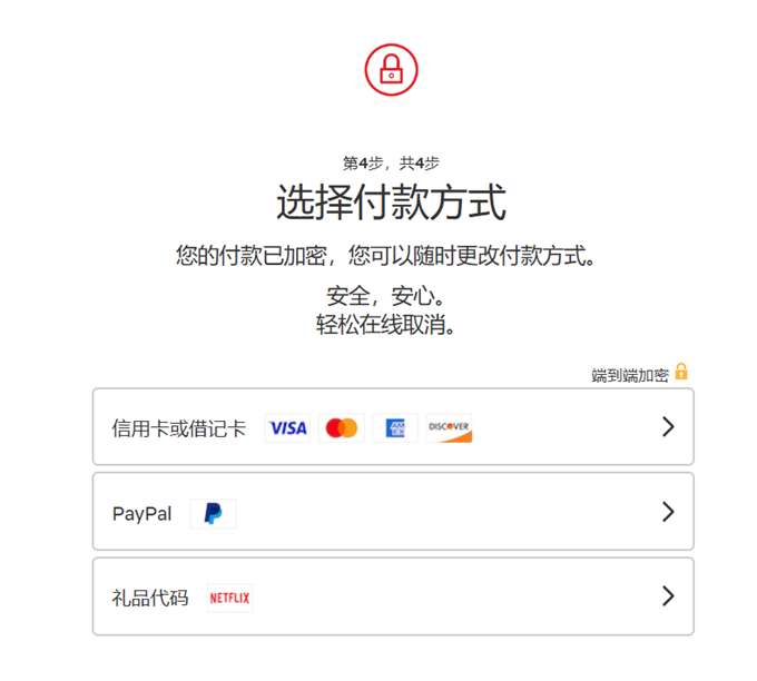 - 选择计划后,Netflix 会要求你提供 支付信息。支持的支付方式通常包括 信用卡/借记卡、PayPal、Netflix 礼品卡 等。