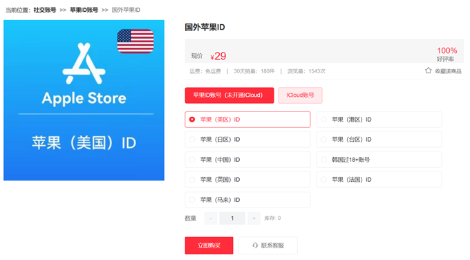 没有账号的朋友可点击美区苹果 ID 账号购买链接获取:点我购买