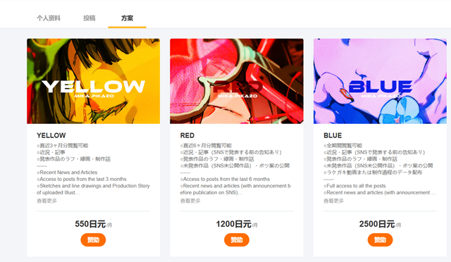 在Fanbox页面,您可以浏览不同的创作者,并找到您想要赞助的内容。每个创作者的页面上会列出他们的赞助方案,通常有不同的价格层级。