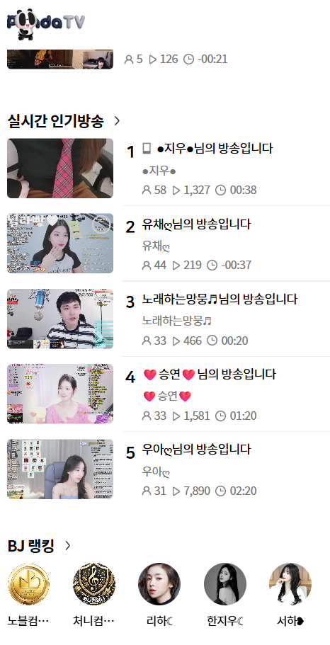 韩国 Panda TV 直播是韩国的一个网络直播平台, 提供多种类型的直播服务,包括游戏直播、音乐直播、舞蹈直播、户外直播、体育转播、脱口秀直播等,能满足不同用户的观看需求。