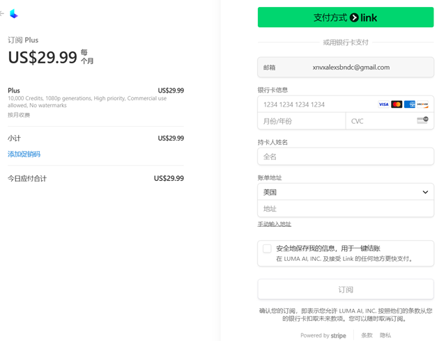 3.支付方式:Luma AI 支持国际信用卡支付,如 VISA、MasterCard 等。请确保您的支付方式支持国际交易。
