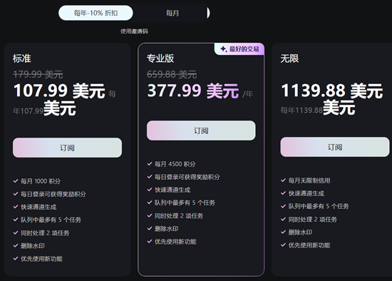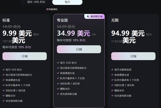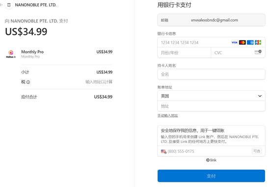 1个月HaiLuo Al standard会员($9.99) 1个月HaiLuo Al Pro会员($35) 1个月HaiLuo Al Unlimited($94.99) | |