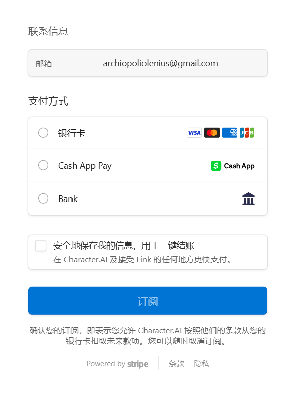 4.选择会员计划:Character AI 会员通常按月收费,具体价格可能有所变化