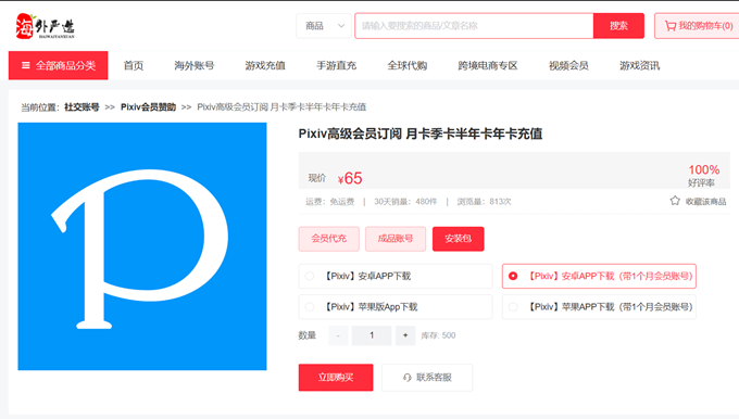1,本商品为Pixiv 的高级会员代充,包含月卡、季度卡、半年卡以及年卡。