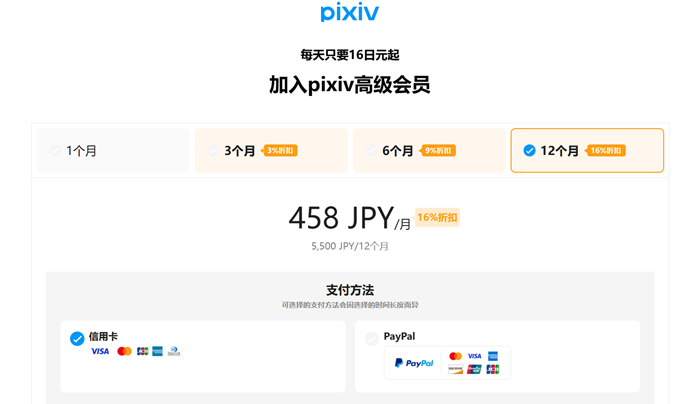 1. 进入pixiv高级会员购买页面根据需求选择需要的账号规格;