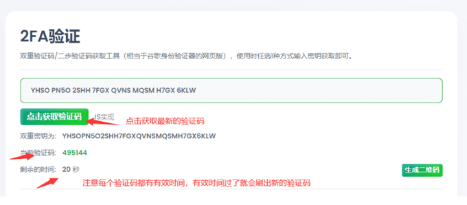 7. 打开后页面中间有个输入框,把2FA密钥粘贴进去,就会显示验证码