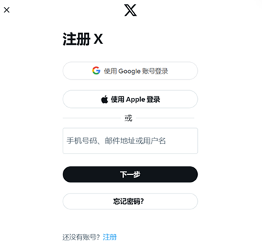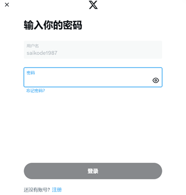 1.打开推特X官网或是APP,在提示框“手机号码、邮件地址或用户名”一栏输入账号;