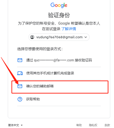 注意:辅助邮箱不是用来登录接码验证的!如下图,直接选3,确定辅助邮箱,输入整个辅助邮箱。
