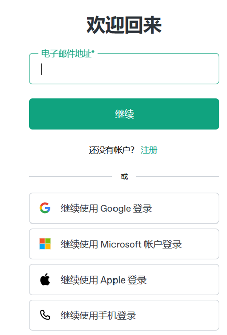 3.在登录页面输入电子邮件地址,然后点击“继续”按钮。