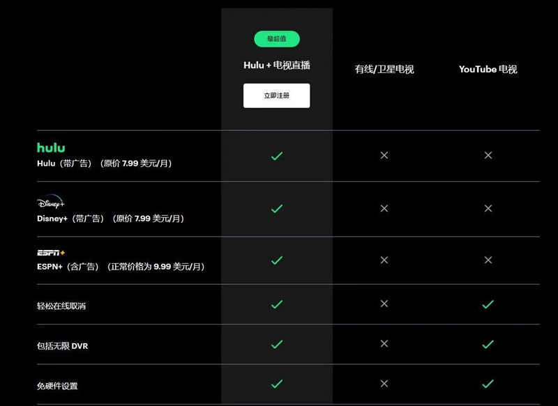 3.HULU LIVE合用无法用于电视盒子设备,必须用HULU LIVE独享套餐.