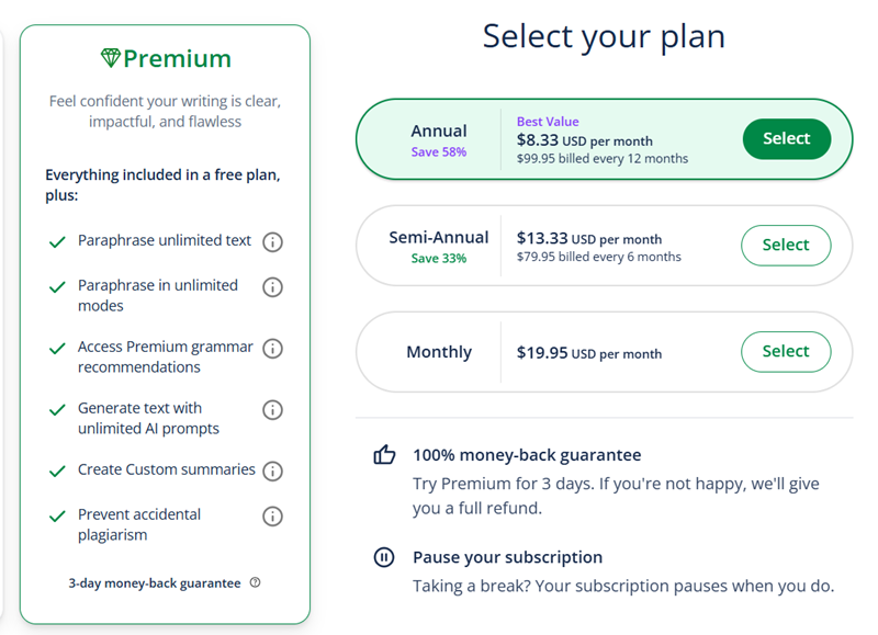Quillbot会员充值_Quillbot高级会员订阅_Quillbot Paraphraser代购代付订阅AI