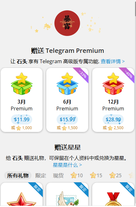 【商品名称】Telegram电报纸飞机高级会员代开代充